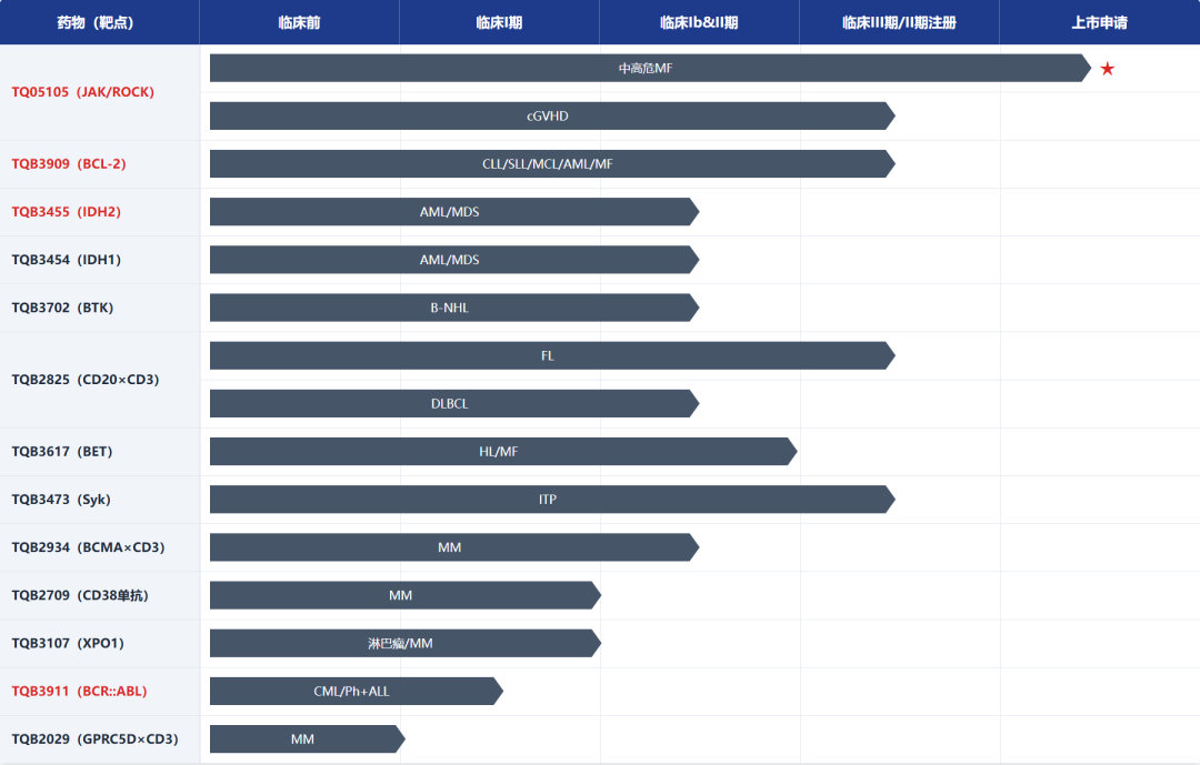 在热点的BCL-2赛道, TQB3909通过提升选择性,显著降低了同类药物常见的血小板减少风险,正在开展非霍奇金淋巴瘤(NHL)和急性白血病(AML)的临床试验,具备极强的国际化授权潜力。还有Syk抑制剂TQB3473、CD3/CD20双抗TQB2825、BCMA/CD3双抗TQB2934等多个产品已进入Ⅲ期临床,将在未来数年内陆续获批。