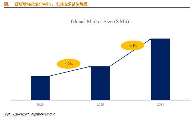 据 QYResearch 调研团队最新报告“全球碳纤维强化复合材料市场报告2025-2031”显示,预计2031年全球碳纤维强化复合材料市场规模将达到135.3亿美元,未来几年年复合增长率CAGR为10.4%。