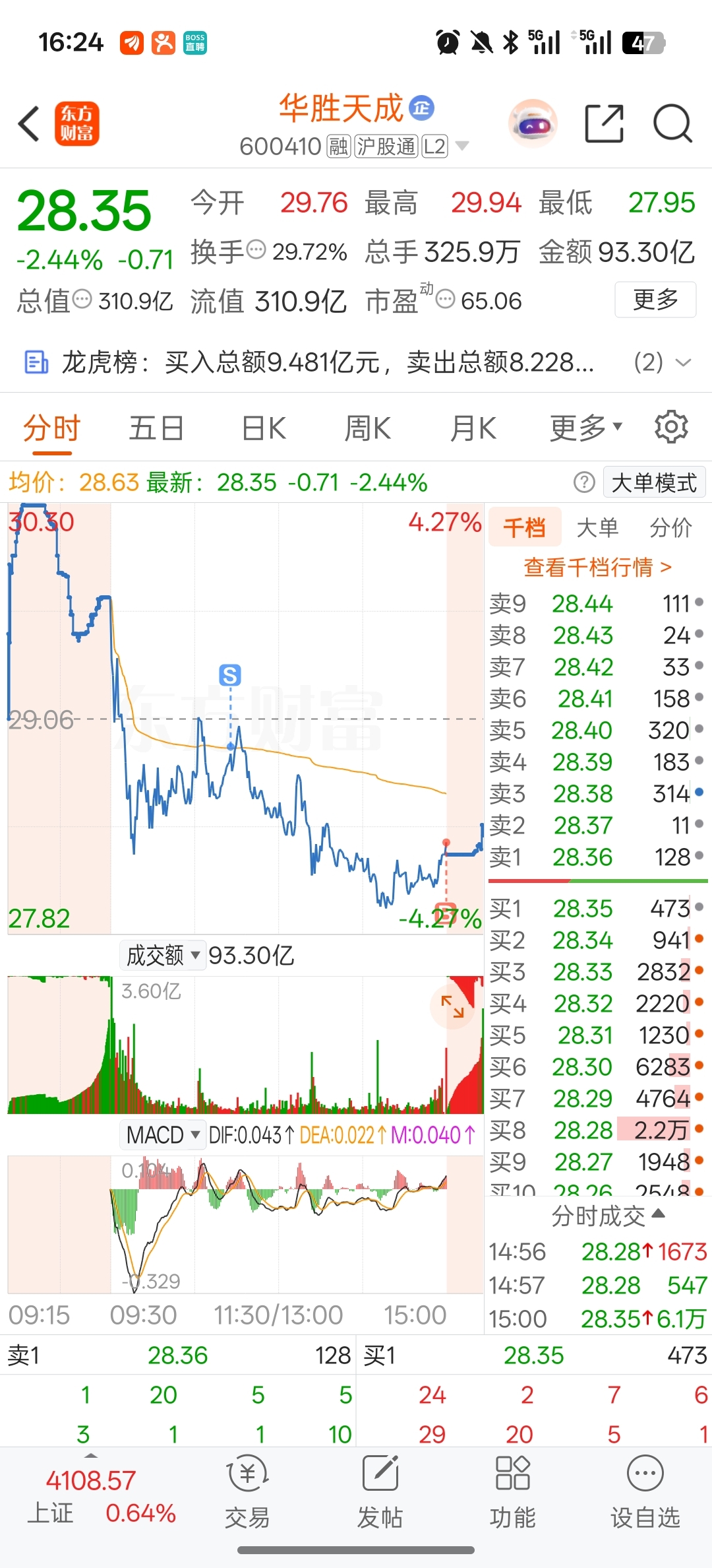 $华胜天成(SH600410)$ 做T降低点成本,继续持有,外面也不太稳定