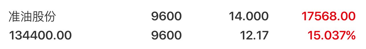 油服工程:准油股份今天跌6.85%,是持仓里跌幅最大的。两连板之后出现分歧,很正常。洗洗更健康,只要油价不崩,这个方向还有机会。