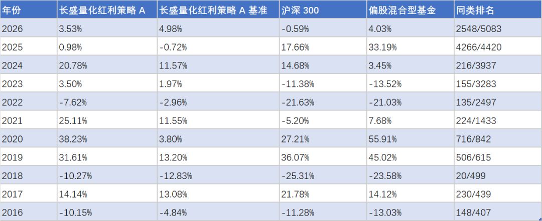 但是客观来讲,长盛量化红利在2022年和2023年表现出不错的稳定性,但是在2019年和2020年、2024年和2025年这两轮牛市中并未跟上市场节奏。