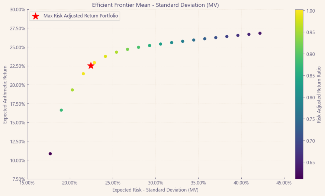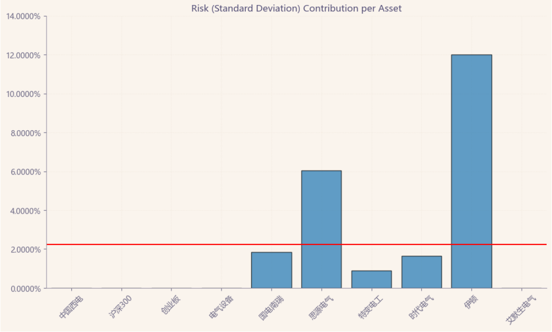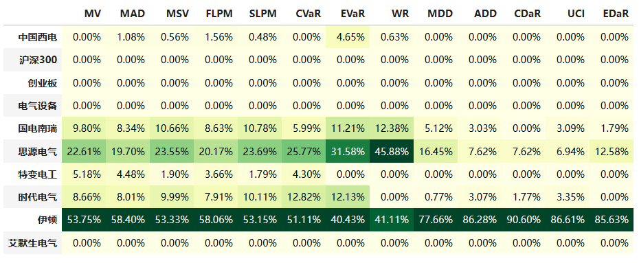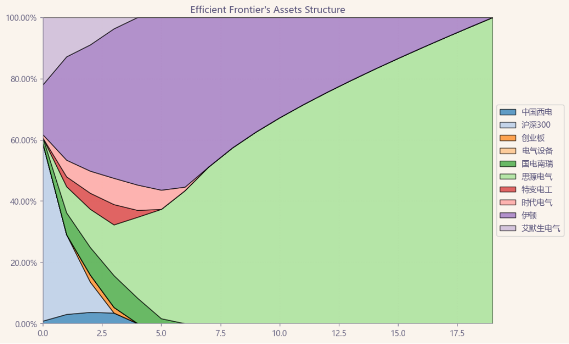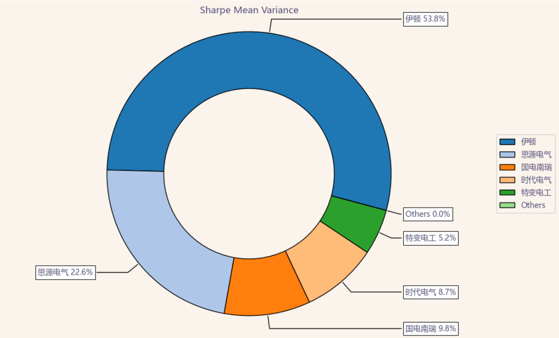 按最高夏普比率配置的话,系统给的权重为0,最高权重给了伊顿占比53.8%。