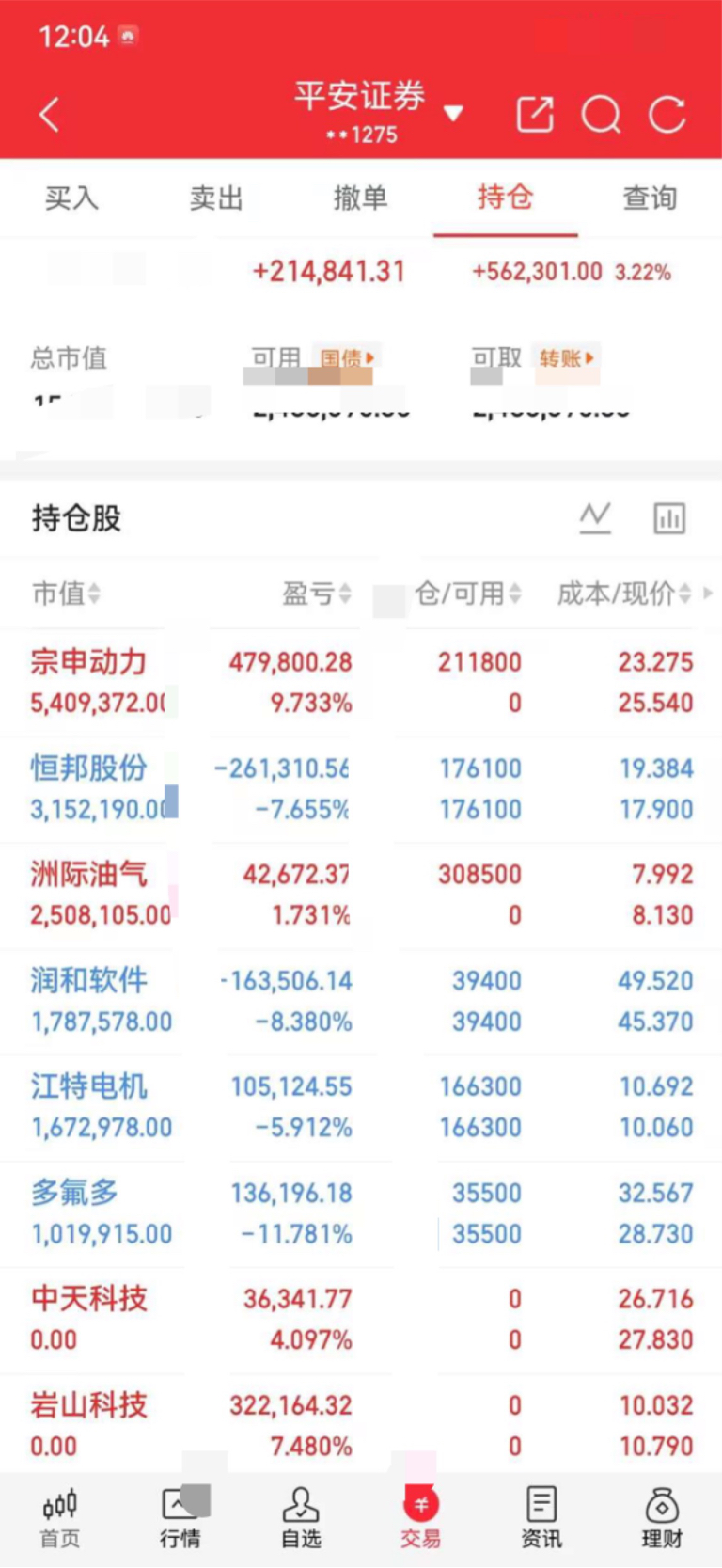 本周A股经历了“冲高回落、探底企稳、主线切换”的剧烈波动,我的持仓组合也在这一过程中完成了风险释放与机会捕捉。整体来看,我坚持“核心重仓 弹性配置 动态调仓”的思路,既通过提前布局的宗申动力、洲际油气等标的锁定收益,也对恒邦股份、润和软件等浮亏标的保持理性判断,在波动中维持组合的稳定性与进攻性。