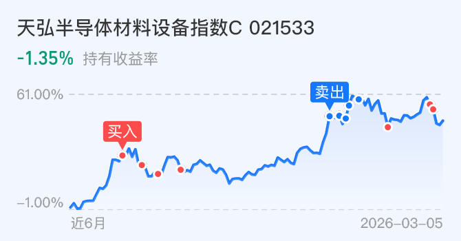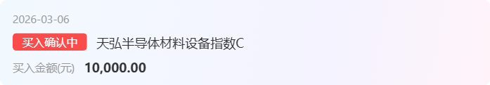 加仓$天弘半导体材料设备指数C(OTCFUND|021533)$1万元,虽然近期半导体设备材料高前期高点附近调整下来,但半导体设备材料的景气周期还在,趋势还在。毕竟存储芯片的超级周期,晶圆制造和芯片制造厂商扩充,对于半导体设备材料而言是重大的业绩支撑。趁着今天调整我再上车1万布局一下。