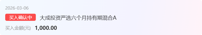 加仓 大成投资严选六个月持有期混合A1000元,这个基金走势还是挺稳的,今天上车1000元,看看表现。