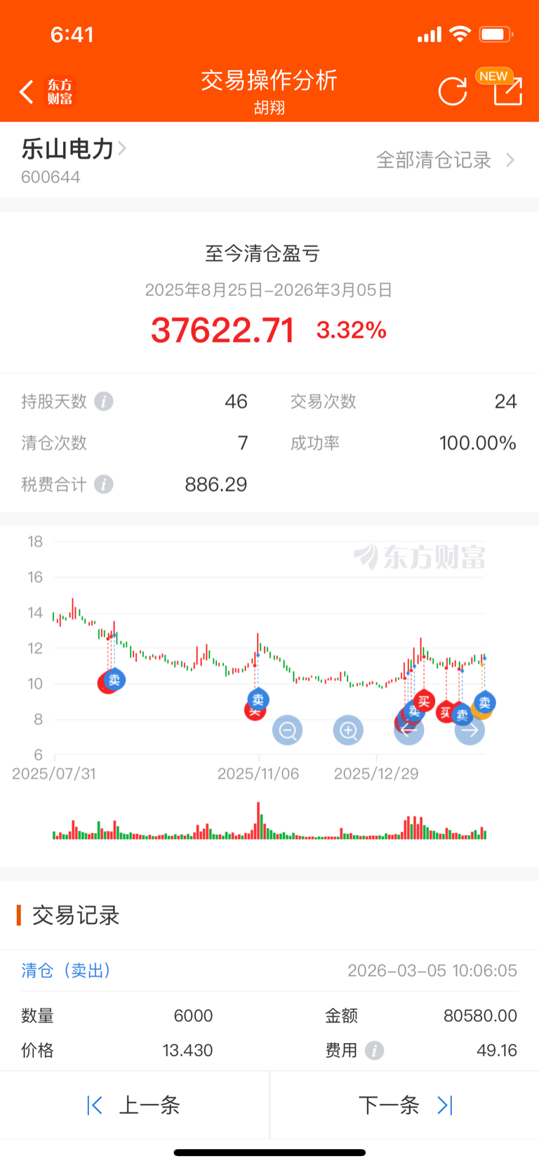 午盘第10次建仓乐山电力,之前九次都是盈利清仓出局,最后一次清仓就在周四下午,目前12000股仓位13.37元成本,乐山难得的回踩五日线,昨天水倔强,始终维持在13.18元五日线上方,周一极大概率反补,和小胡同车的朋友可以设置一个止盈价,不过现在看不好出来要等周一集合竞价看了!