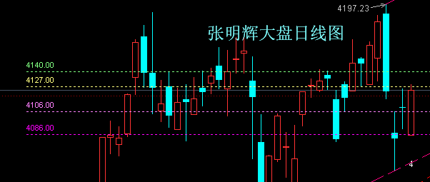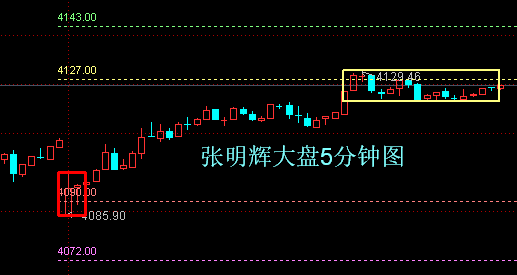 验证:周五大盘走势符合预测所述。具体为:大盘早盘直接跳空低开在4090点关键支撑位的下方4086点,之后低开高走快速收复了4090点,接着就如期再延续反弹走势了。大盘在反弹到4127点关键压力位以后,围绕4127点展开了近一个半小时的震荡争夺走势。最后报收于4124点而确认突破失败。成交金额9788亿,呈明显缩量状态。