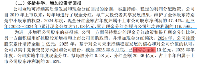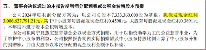 由于公司很赚钱,所以公司大手笔进行现金分红,2024年派发现金红利30.7亿元。比较有趣的是,中小股东每股派发现金红利0.4598元,大股东每股派发现金红利0.3891元。