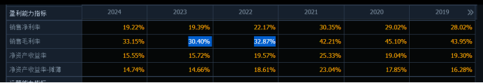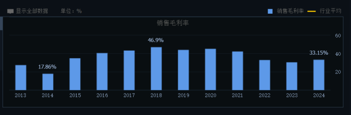 2022年和2023年公司毛利率下滑,净利润出现负增长,这背后是行业需求的波动。2021年,公司毛利率高达45.1%,2022年下滑到32.87%,2023年继续下滑到了30.4%。然后2024年毛利率回升到33.15%。