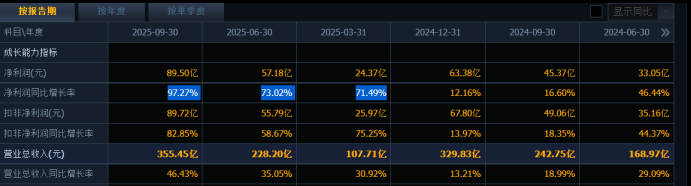 2025年,公司净利润进入高增长区间,前三季度净利润增长97.27%,而且增速一个季度高过一个季度。