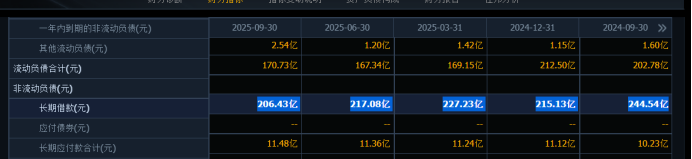 截止2025年三季报,公司账面现金27亿元,短期贷款为零,长期借款206亿元,一年内到期的非流动负债64.5亿元,其他非流动负债2.54亿元。