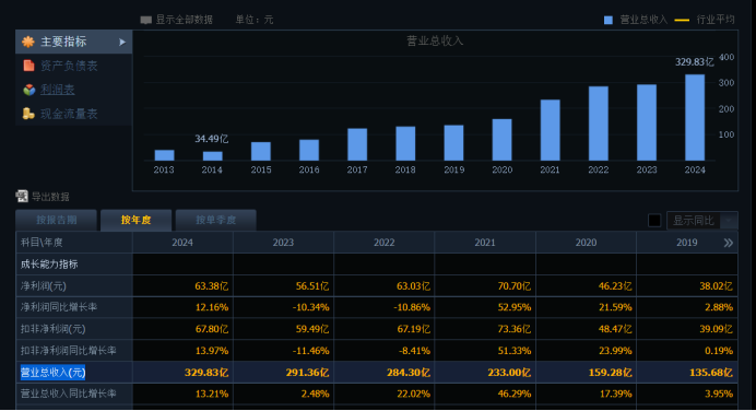 公司于2019年上市,随后几年公司的营业收入持续增长。