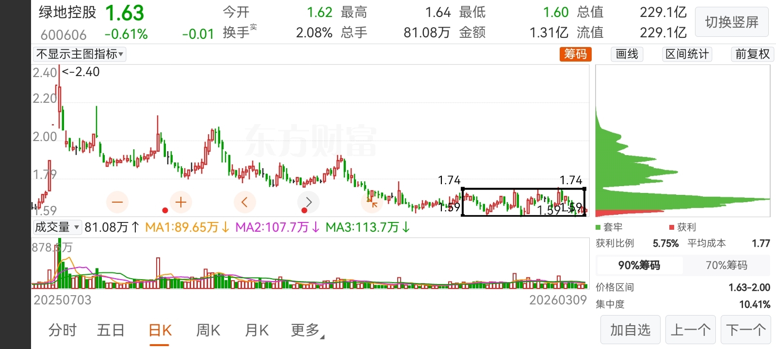绿地控股在一个盒子里有规则的波动,1.59能不能筑底企稳,结构上看可能要去向下加大力度测试一下压力!