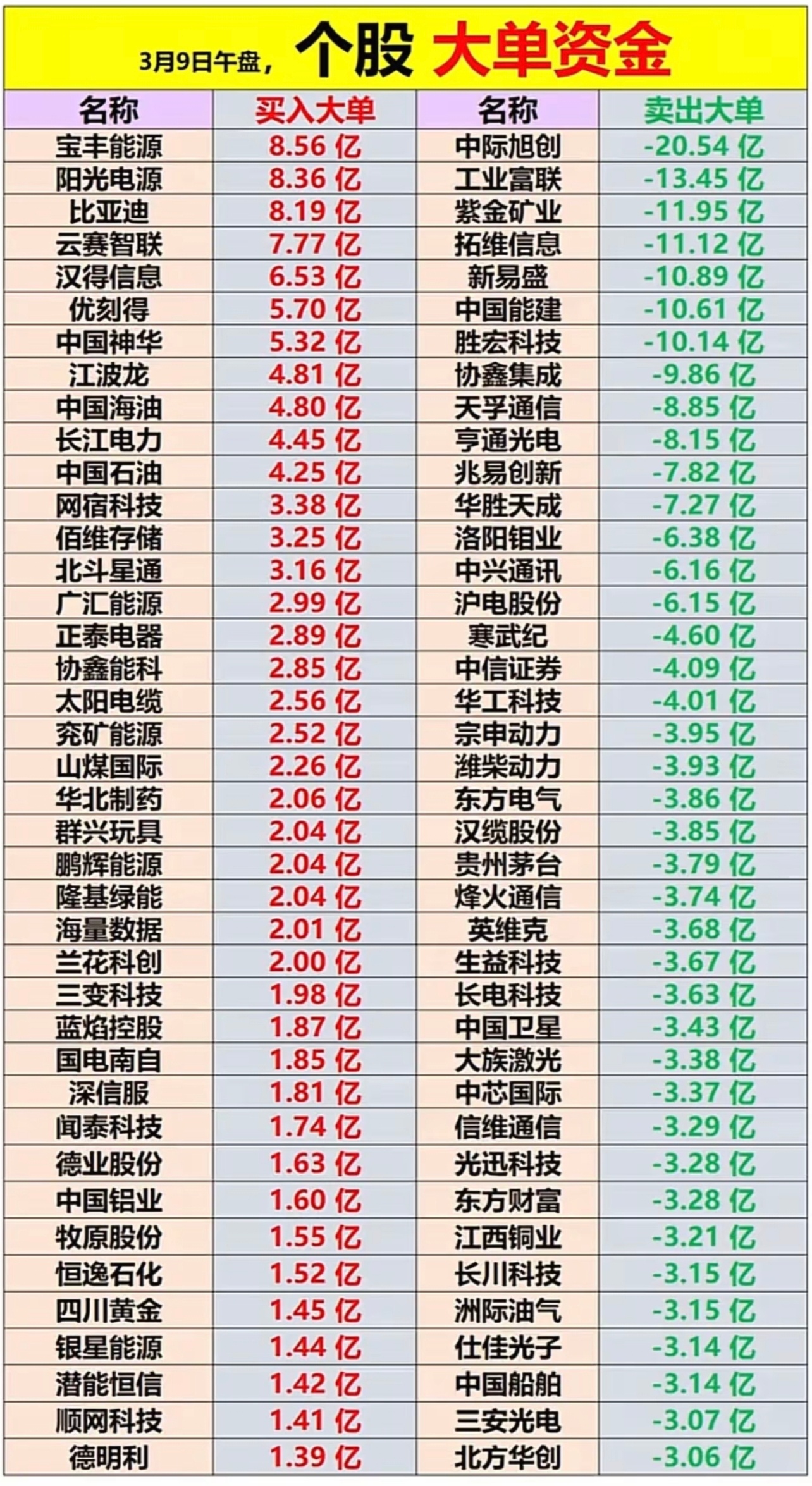 2. 头部效应突出:中际旭创的流出规模远超其他个股,宝丰能源、阳光电源等流入股也占据了显著的资金份额。