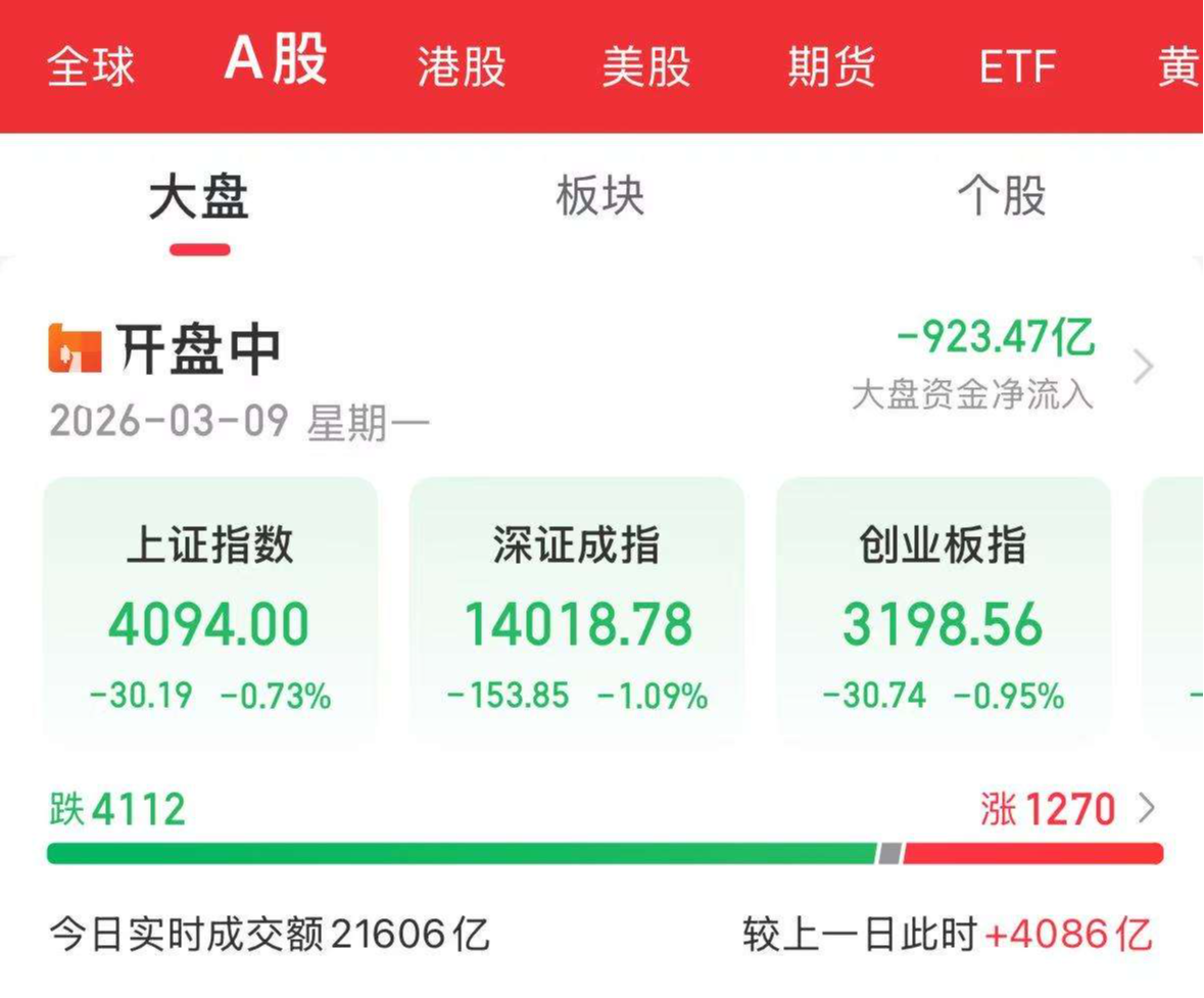 我们知道这次全球股市尤其是东亚股市的大波动 ,是中东地缘冲突引发的,尤其是霍尔木兹海峡石油运输持续受阻,导致油气等资源类板块大幅上涨,今天油气煤炭的上涨导致科技板块CPO的大幅下跌,资金一方面在减仓科技避险一方面在做科技和资源类的切换。
