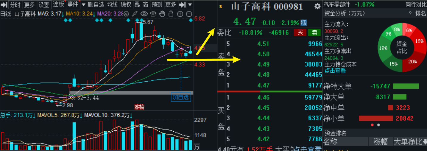 $山子高科(SZ000981)$比较可惜,反抽2日后再次调整,短期走势的确不乐观,股价持续受5日线压制,足见压力还是很大,盘前有人留言说山子没有主力迹象,我并不认同,最近市场持续调整为主,但它下跌力度并不大,一直维持在高位震荡,已经是很强了,日内指数回调,它跟随走跌,明显是被动调整,最高也才跌超4%,资金流出也不多,下方60日线支撑不破,山子高科就无需担心,现在市场都在跌,就它今天表现已经跑赢很多人了,高位选择震荡,恰恰相反是有主力承接迹象,我是要继续拿的。