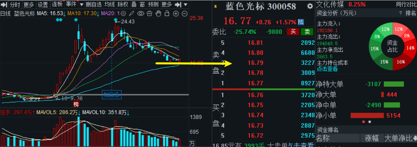 $蓝色光标(SZ300058)$指数大幅低开,但光标却低开高走,这就是典型的背离,盘前我说了的,它从高位持续回调,压力释放了不少,大跌的可能性不大,今天就主动拉高,主力还是很给面子,技术上看MACD绿柱逐步缩短,成交量比较低迷,意味着空方开始衰竭,下行以来一直受5日压制,但今天是有突破这个位置,有转强的迹象,当然一天的走势不能说明什么,若是再来一跟阳线则反转的概率就大了,AI这段时间一直在反复,市场大的方向还是围绕这个题材来做,AI应用调整了一段时间,也是该轮到它了,毕竟机会是跌出来的。