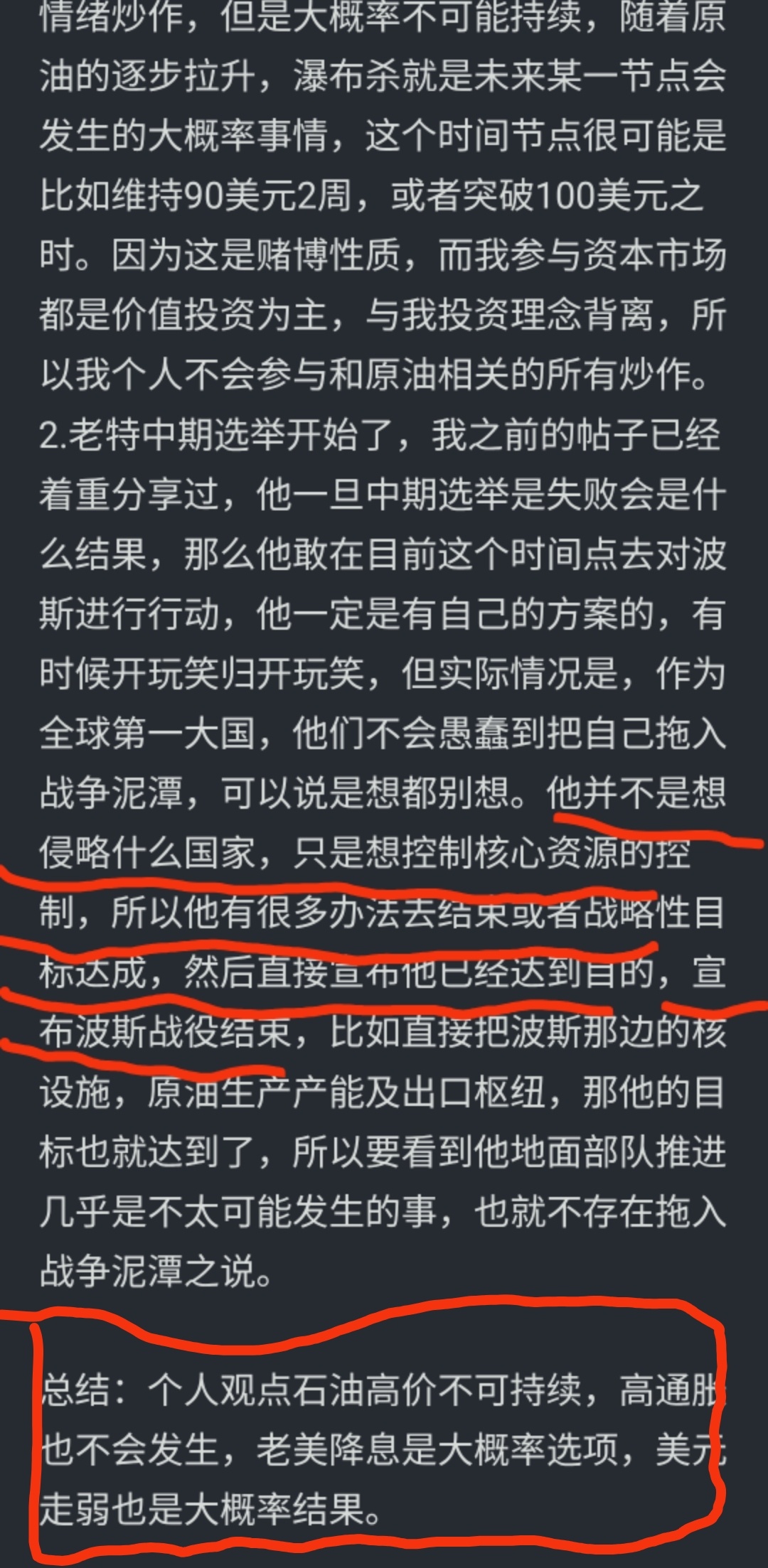 5. 昨天早上预判贴我就特意说了,石油这种博弈性质的东西,和我投资理念不同,我就不参与了。