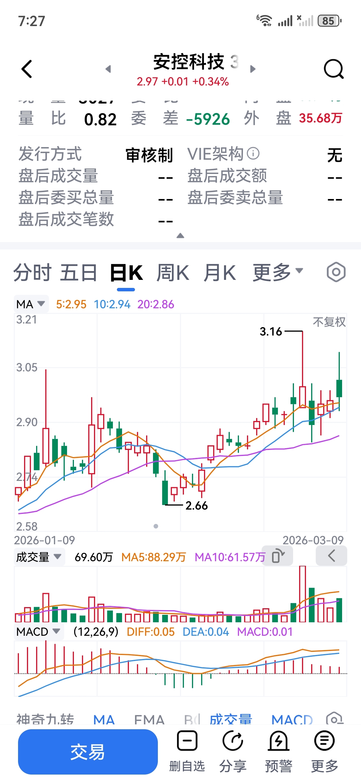 $安控科技(SZ300370)$ 安控科技近期是非常标准的“主力试盘+强势洗盘”走势,目的是消化前高压力、清洗浮筹。短期突破3.16元需要放量(>80万手)配合,否则会继续震荡洗盘;中期在题材和均线支撑下,放量突破前高必然是大概率事情。