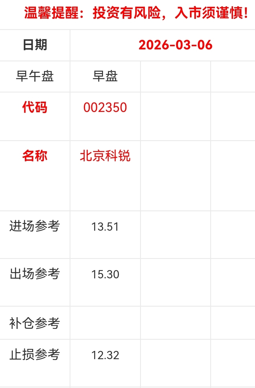 $北京科锐(SZ002350)$ 北京科锐今天非常棒,剩下的仓位就看明天挑战新高了,不管如何明天就是计划四个交易日了,涨跌短线都要出,除非早盘五分钟内涨停或一字板可以留一留!目前也是不错的效果了。