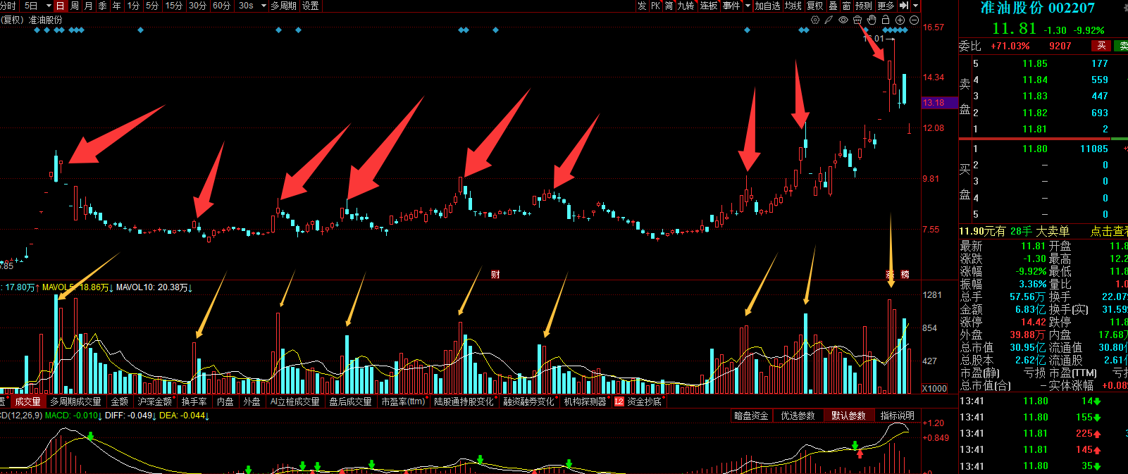 市场不仅仅讲逻辑,也讲情绪,准油股份就把情绪化的市场,演绎的淋漓尽致。准油股份的每一次放量,都是短期见顶的动作。逻辑上看,霍尔木兹海峡依然无法正常通航,油价依然有上涨的预期。国际原油价格走了过山车,这看起来似乎是准油股份下跌的逻辑,实际上,准油股份从上周连续涨停以后,就开始进入分化出货的阶段,逻辑是上行的,但主力资金会在情绪高点,散户蜂拥而入的时候割韭菜,所以我上周三卖出了准油股份。伊朗封锁霍尔木兹海峡会推动油价大涨的逻辑没错,主力趁机派发出货打压股价。股票价格和逻辑并非是一回事。当然我并非看空准油股份,而是说的是市场情绪,等待下一轮充分调整的地量地价的时候,再一次考虑买准油股份。