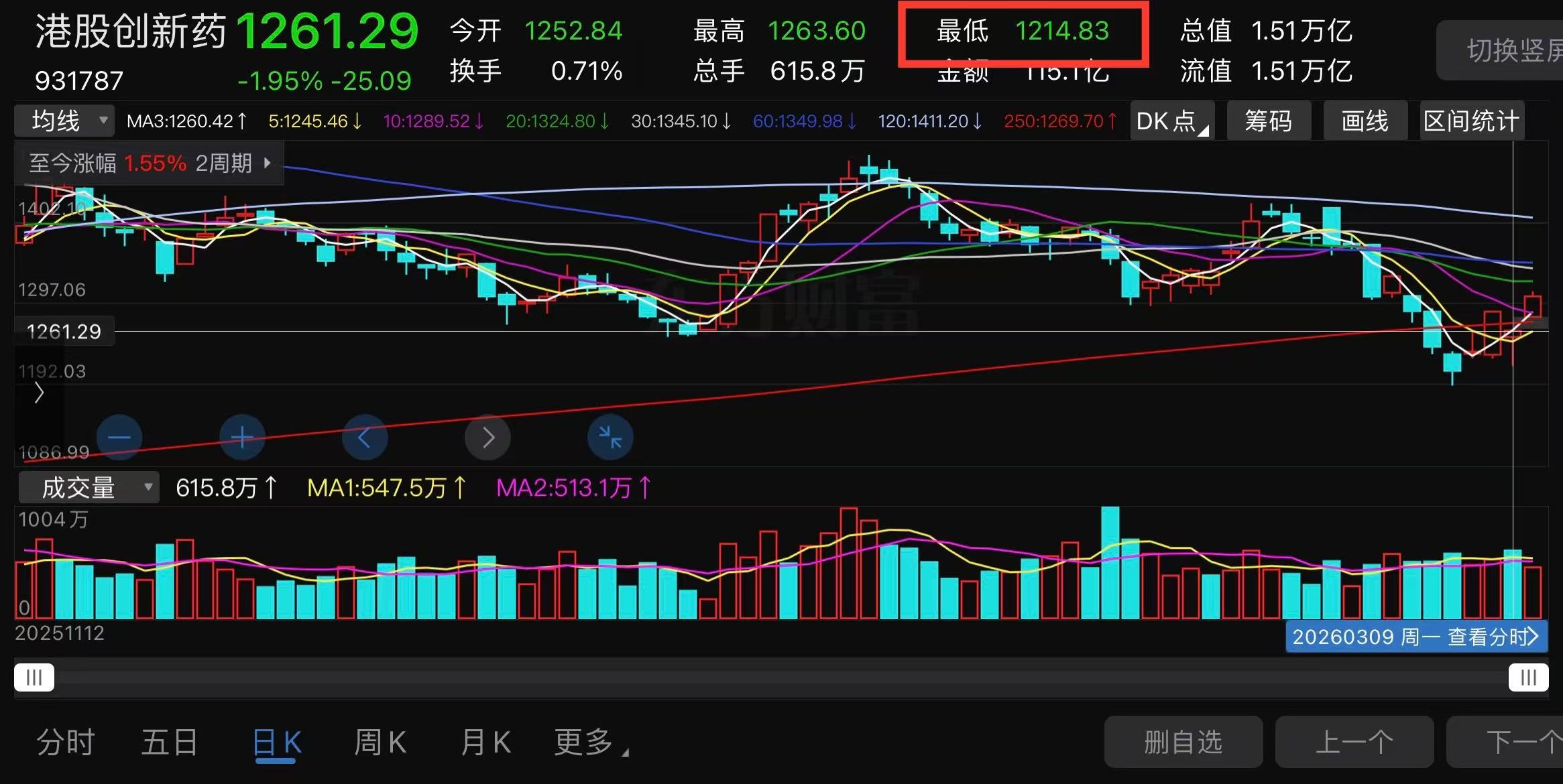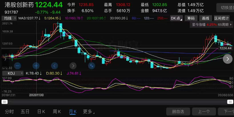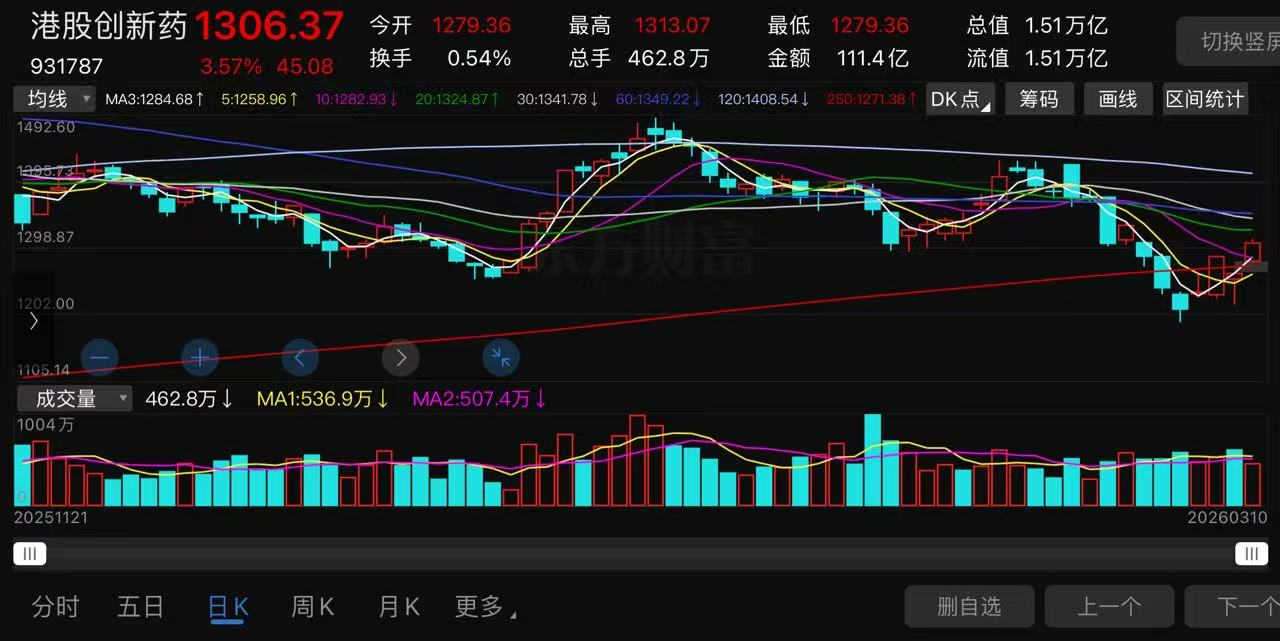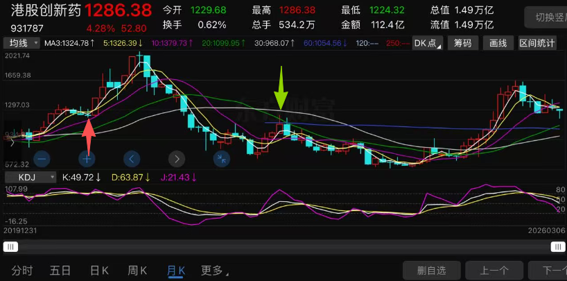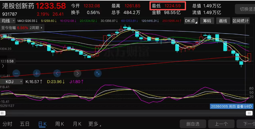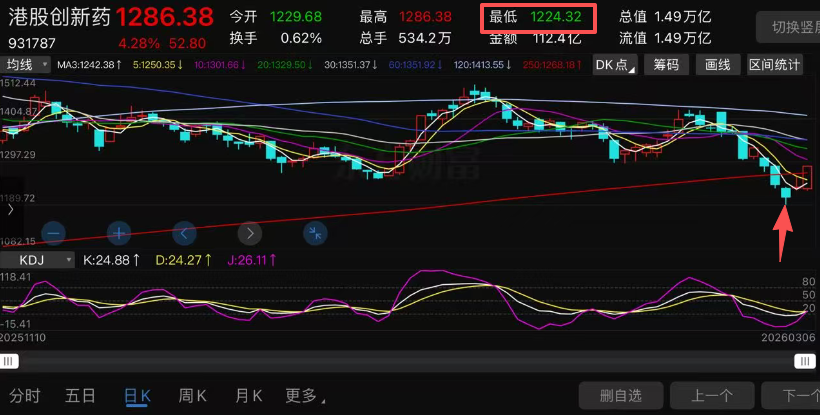 港股创新药这波调整最低是3月4日的1188.88。