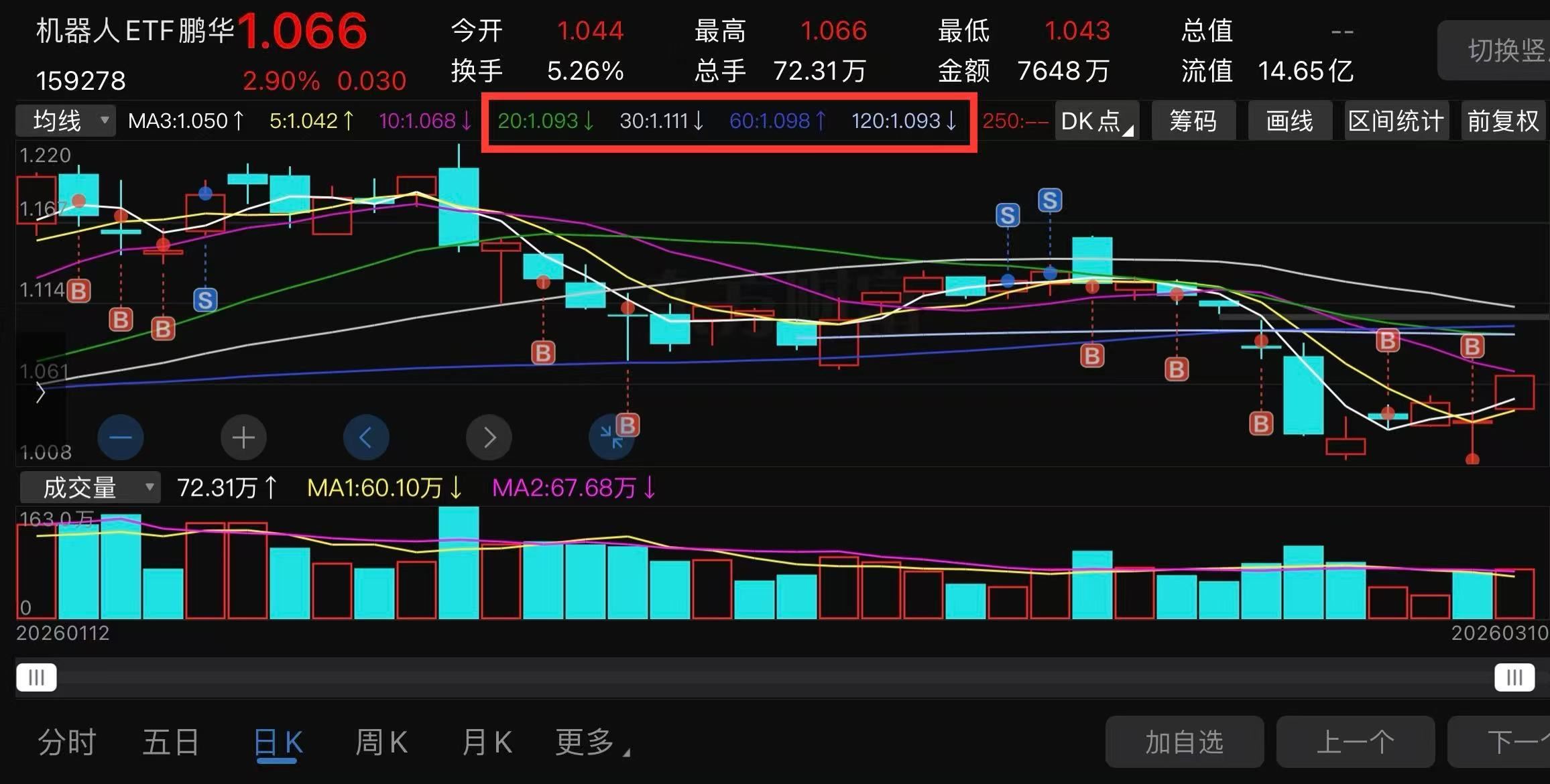 没有到10日线1.068、60日线1.098前,可能不会卖出。