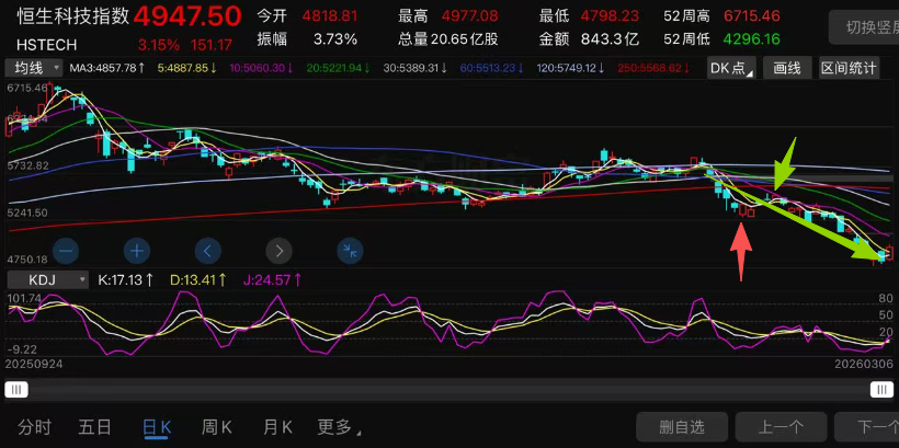 先看恒生科技指数最近的走势: