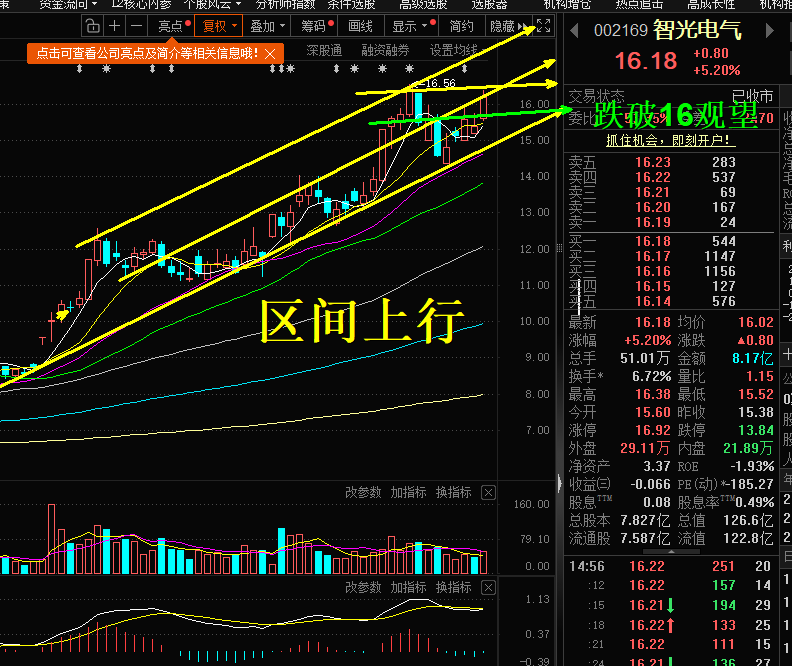 操作规划:明显的上涨趋势下,更需要量能配合推动上涨,如果电力力度还在,考虑一成仓参与,如果跌破16块钱选择观望。