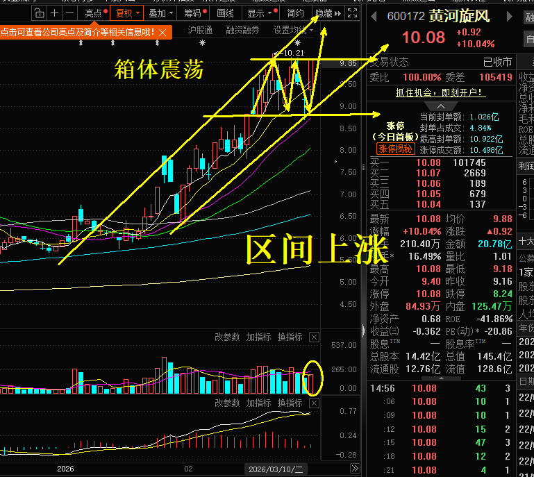 当前该股在资金积极推动下进行区间上涨,近期箱体震荡换手