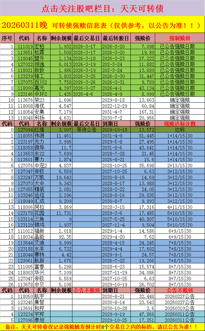 选债标的见文后表格,仅供研究参考,以此投资风险自负!表格不理解可以留言!各处栏目号均以 "黄金阶梯转债宝" 为名,其他名字非本栏目发布。