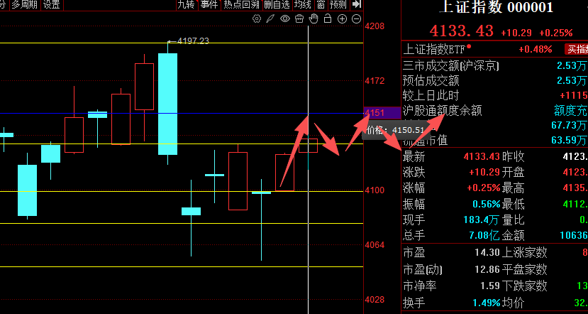 今天上证最高打到4135附近,最低回踩4112,全天波动其实不大,但位置很关键。因为4130一带本身就是这两天反复争夺的短线分水岭,今天能够收在这个位置上方,说明多头还在顶,指数并没有走坏。与此同时,但再往上,短线分歧也会明显加大,简单讲,现在的大盘不是不能涨,而是越往上越不能追。