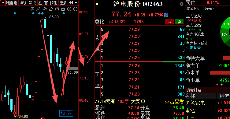 1.如果早盘科技线回流,沪电能快速站稳分时并重新放量,那就继续拿,甚至可以考虑做T。