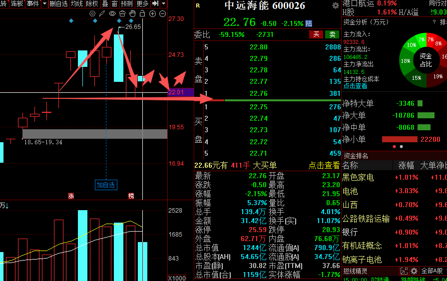 1.如果明天油运、油气方向继续弱,中远低开低走,那就继续看22元附近支撑思路,不在恐慌点乱砍。