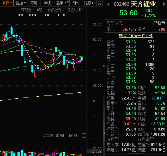 天齐锂业:锂价虽然止跌企稳,但下游需求疲软,行业去库存还在持续,所以今天早盘主力大概率还会小幅出逃,走势比较平淡,以震荡为主,别抱有大幅反弹的期待