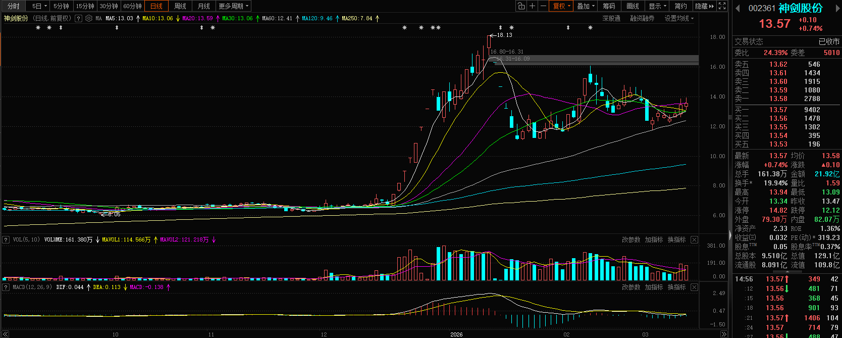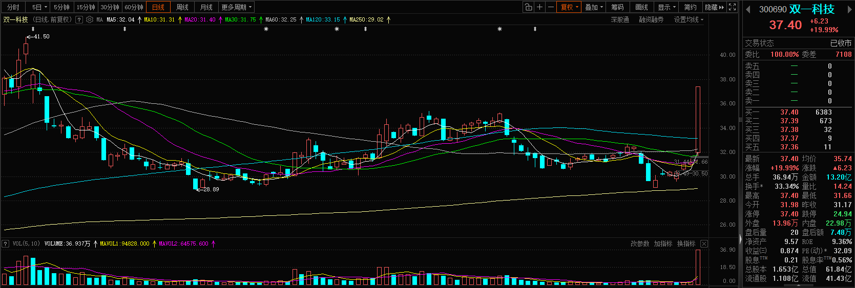 双一科技:英国 3 月 12 日官宣,4 月 1 日起取消 33 类海上风电组件进口关税,双一科技作为风电叶片模具 + 机舱罩龙头,直接承接出口订单爆发红利,海外高毛利订单占比将提升至40%+,低空经济有背书,碳纤维、PEEK 材料概念同步走强,双一科技作为多概念叠加龙头,风电 + 低空经济双重引爆,主力洗盘已彻底收官,筹码换手充分,今日双一若能平开回踩 36 的位置不破即可上车, 36一下看 35 的位置承接,连扳情绪应该有点难,今天可能是偏震荡,但是昨日刚放量,行情没那么快熄火,正是参与好时机,如若高开两个点内可以上车博弈,高开太多则放弃,各位战友做好准备,等待南哥指令。