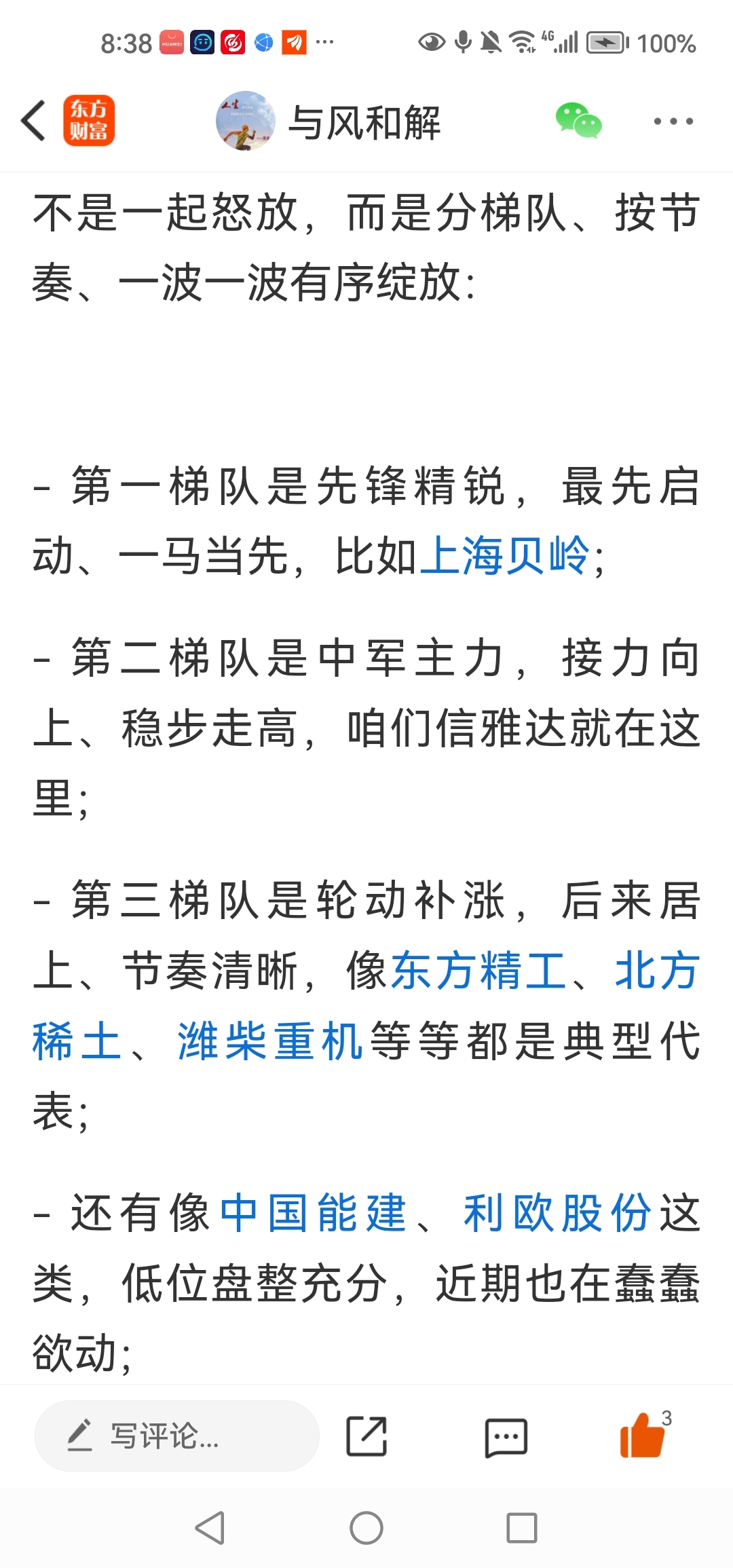 低位蓄势品种会走轮动补涨、先后发力的节奏,当时提到的中国能建、利欧股份,都属于这一类。