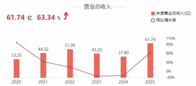 3月5日,大金重工披露2025年年报,交出一份历史最佳成绩单:全年营收61.74亿元,同比增长63.34%;