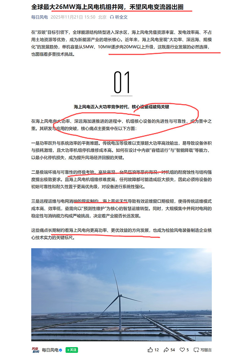 风电变流器是风力发电机组核心部件,被称为海上风电的“心脏”,负责将风轮产生的交流电转换为电网适用的电能。