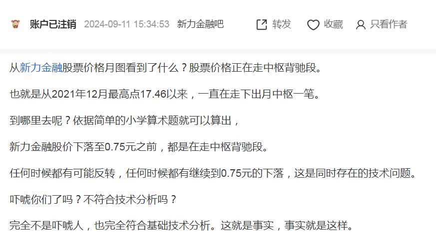 小槐树2024年9月新力金融5.18元自己吓唬自己,信誓旦旦新力金融必须跌至0.75元,由此在5.18元坑底出局(数量不祥,估计也不会多,深套本金合计也就三万元)!次日新力金融一路上涨不回头!咱2024年9月以5元左右价格初始推入,做完一波修复即刻清仓出局!炒股 唯有下杀取量,杀猪盘时 ,方可重仓!随后就是一路回笼资金!