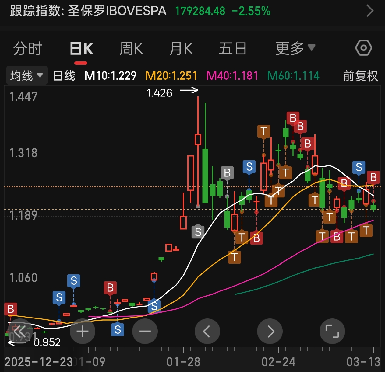短期(1-2周):大概率还是震荡磨底,核心压力就是这个高溢价,价格得往净值靠一靠。不过巴西能源股还在吃油价上涨的红利,能托一托指数,我觉得短期会在1.15到1.25这个区间晃,等溢价收敛了、地缘情绪缓和了,才会慢慢企稳。