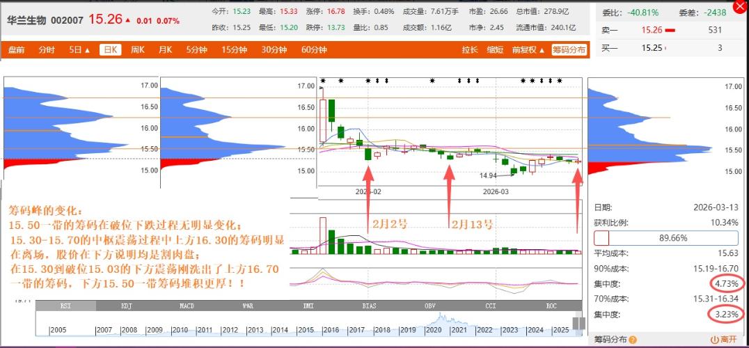华兰的走势相对于医药板块疫苗板块一直最弱,但主力又让看空的看不到新低的出现,又不向上让场外资金不敢再轻易进场,股价也一直在15.28的技术目标位前晃悠,真是让人觉得食之无味弃之可惜啊!典型的鸡肋吧!!你看到了主力也看到了大家都能看到,弱!!!可往好的方向看呢,14.94新低后重回上方小中枢内还能坚持在上沿震荡,上一周一直讲的15.28突破信号也不给确认性信号,向上也离开不远随时会掉落,期间又跌破两天,今天收盘再能站上又是2天站上15.28,那明天呢,主力会让他再度跌破吗?