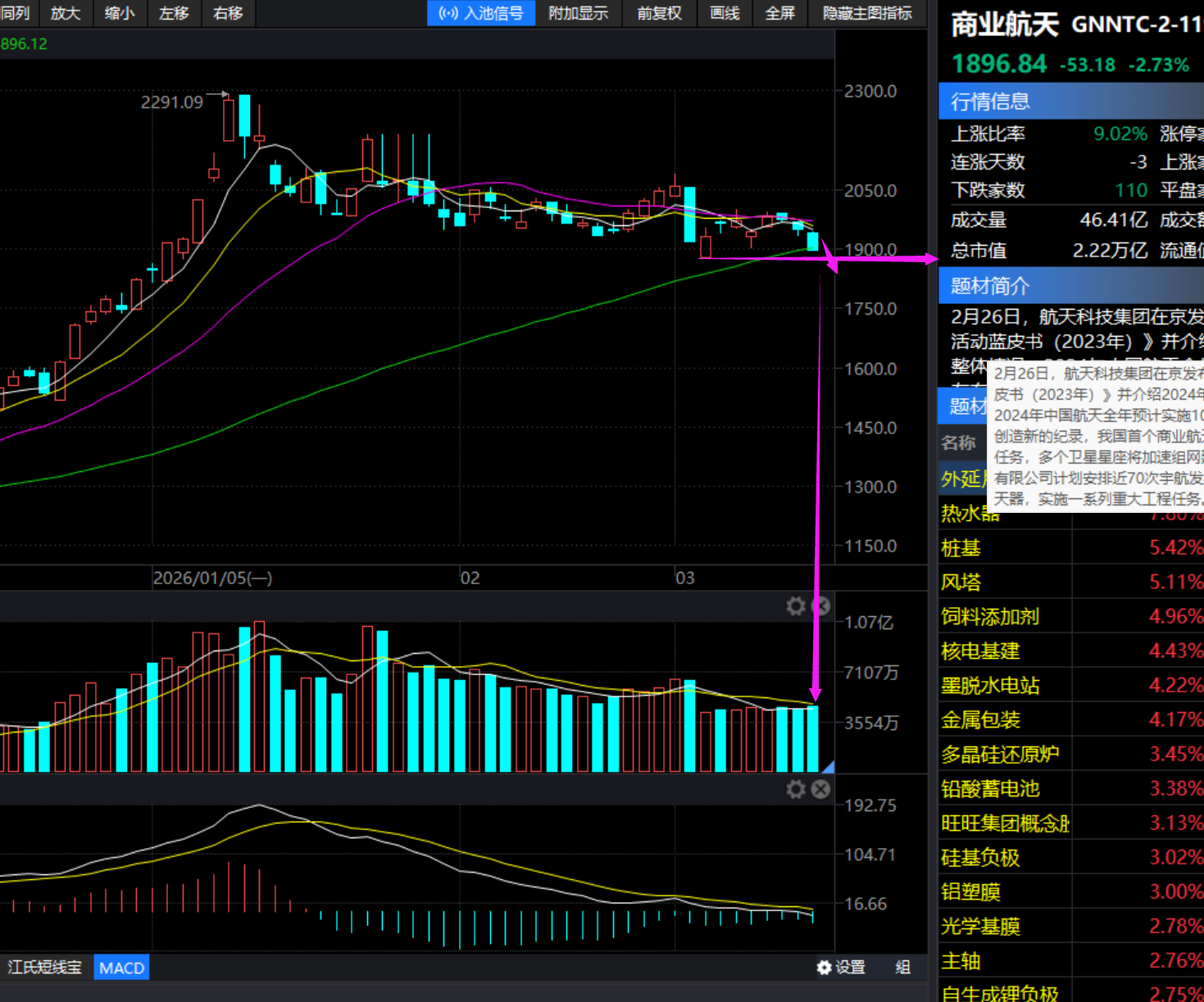 商业航天板块:关注前低位置能否形成有效支撑企稳,目前放量下杀看不到有效承接。