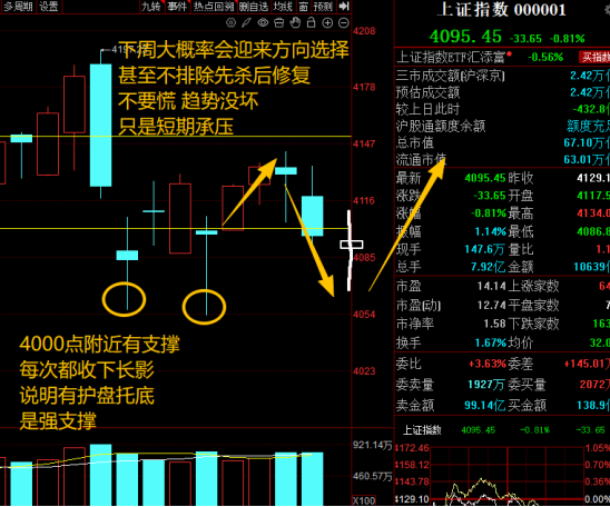 所以今天这根阴线,更多是情绪宣泄,不是趋势崩坏。要有两个共识:一个是4000点附近大概率仍有支撑,另一个是下周大概率会迎来方向选择,甚至不排除先杀后修复。这一点和我们前两天的判断并不冲突:指数短线承压,但中期还没走坏。