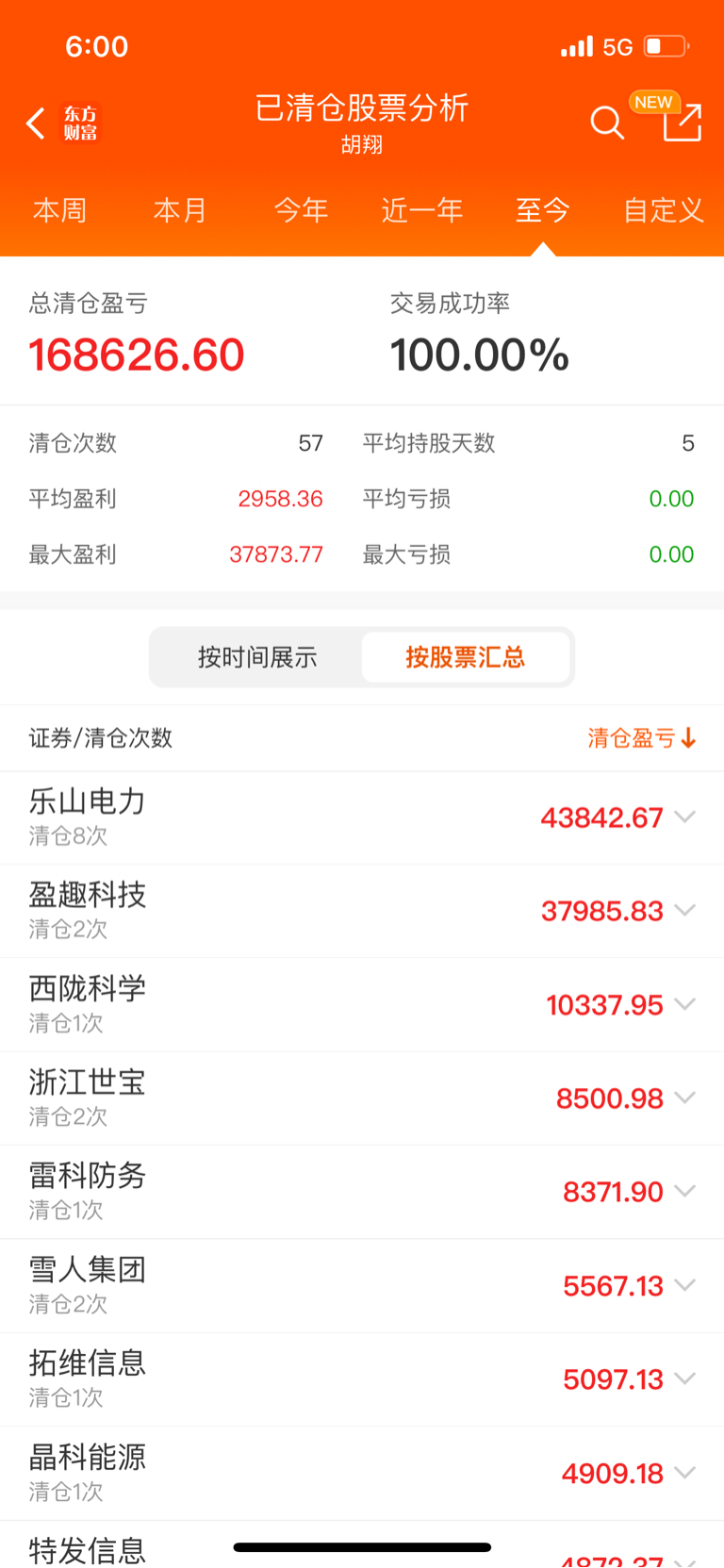 小胡2025-08-11入驻东财,选股成功率100%,清仓近60次,全部盈利出局!