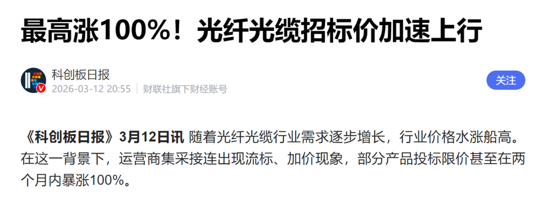 如果说技术是长飞的“里子”,那么这轮暴涨的“面子”,则来自一场完美的供需风暴。