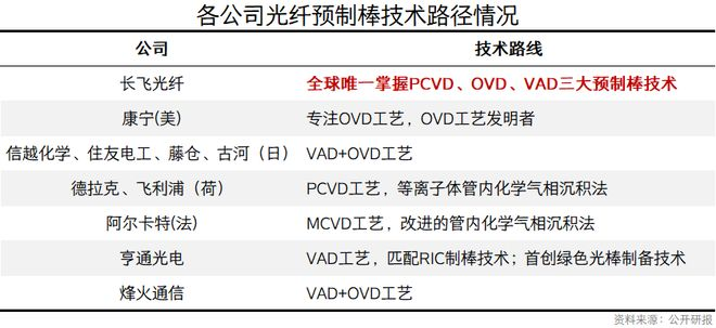 经过二十余年的技术攻坚,长飞不仅掌握光纤预制棒(光棒)这一核心环节,更成为全球唯一同时掌握PCVD、VAD、OVD三种光棒主流工艺并实现产业化的企业。