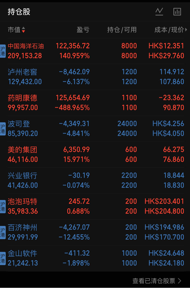 以29.70港元小幅卖出中海油H 2000股,成本继续回落至13港元下方,减仓后仍为第一大重仓股,仓位29.7%;
