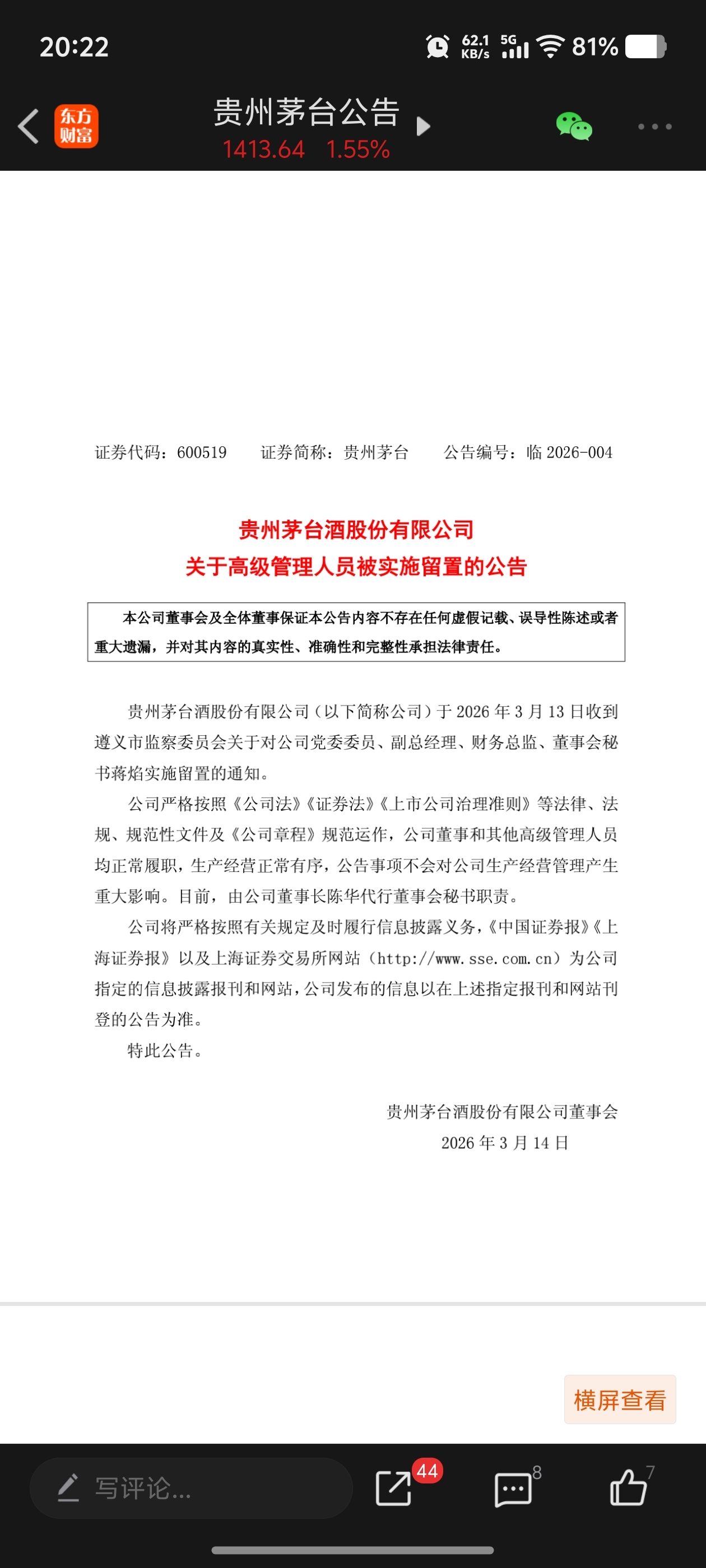 $贵州茅台(SH600519)$ 怎么也没想到贵州茅台今天也有利空公告。