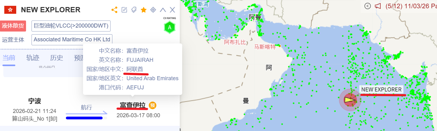 (1)图2 new explorer目的地UAE富查伊拉港,在霍尔木兹海峡外;